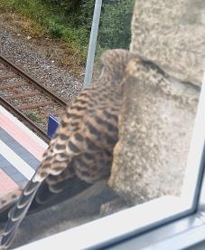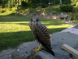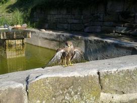 Nach dem ersten Flugversuch landet der Jungfalke im Wasser |